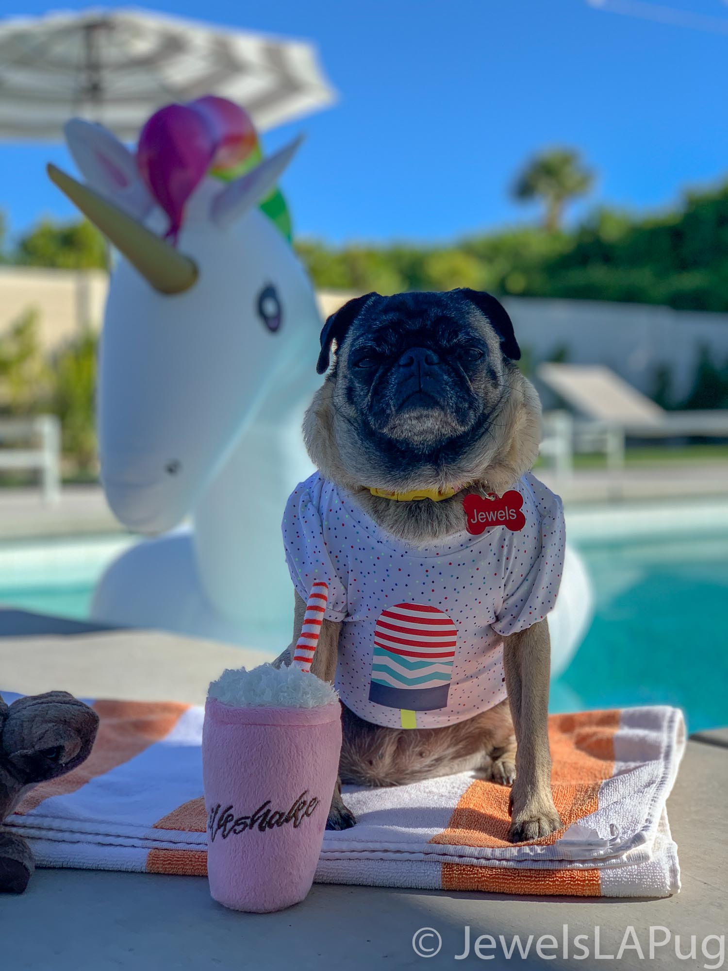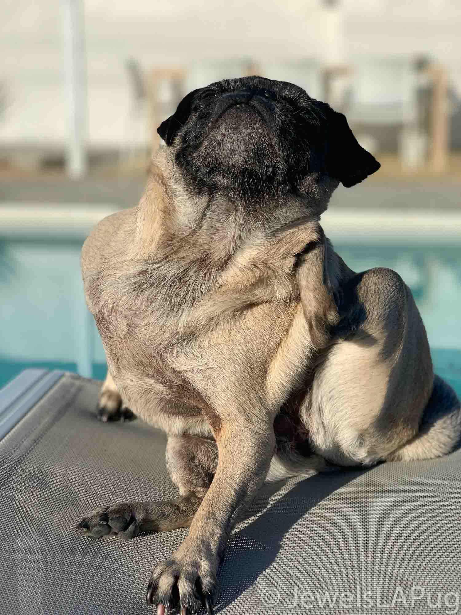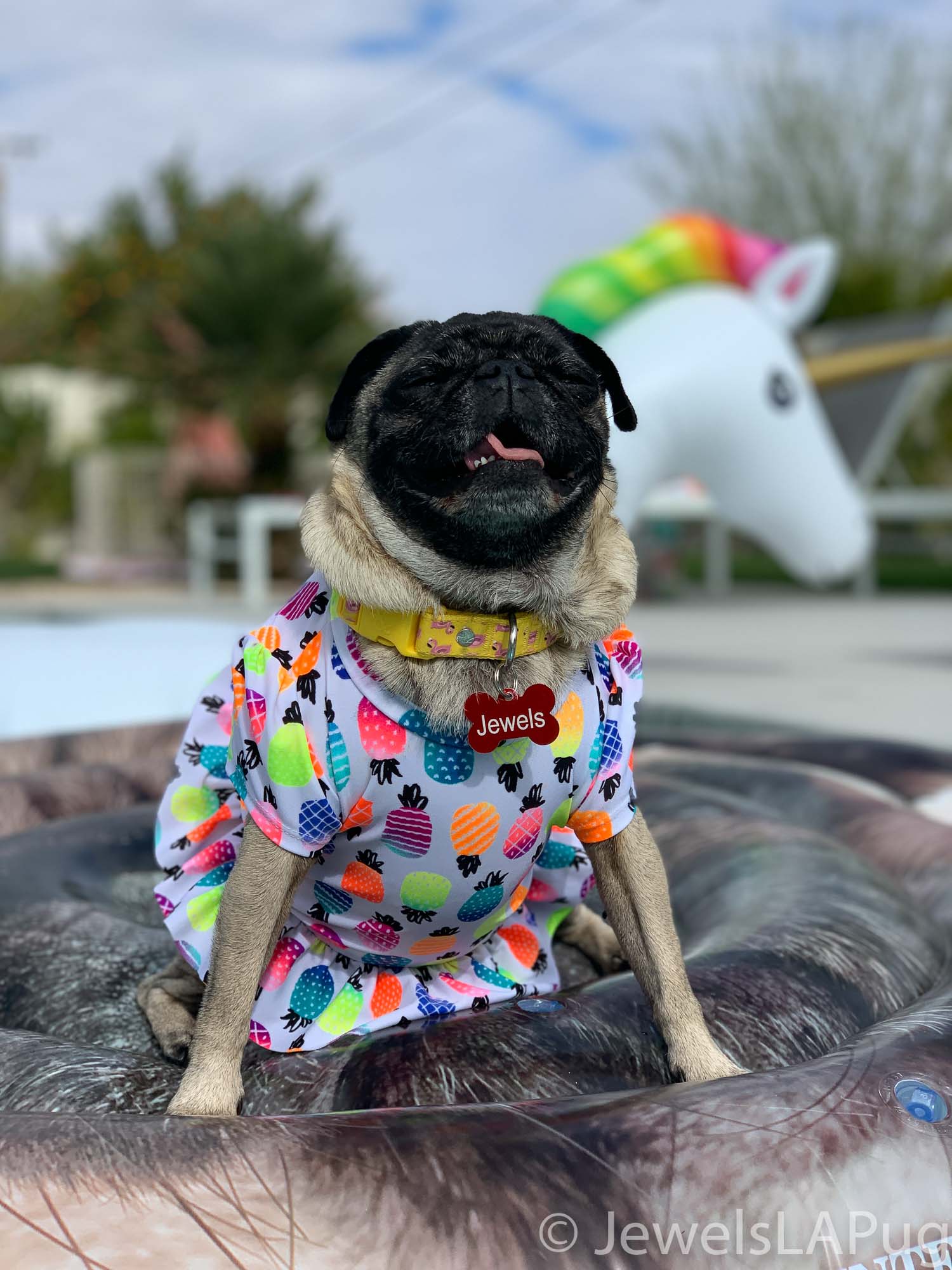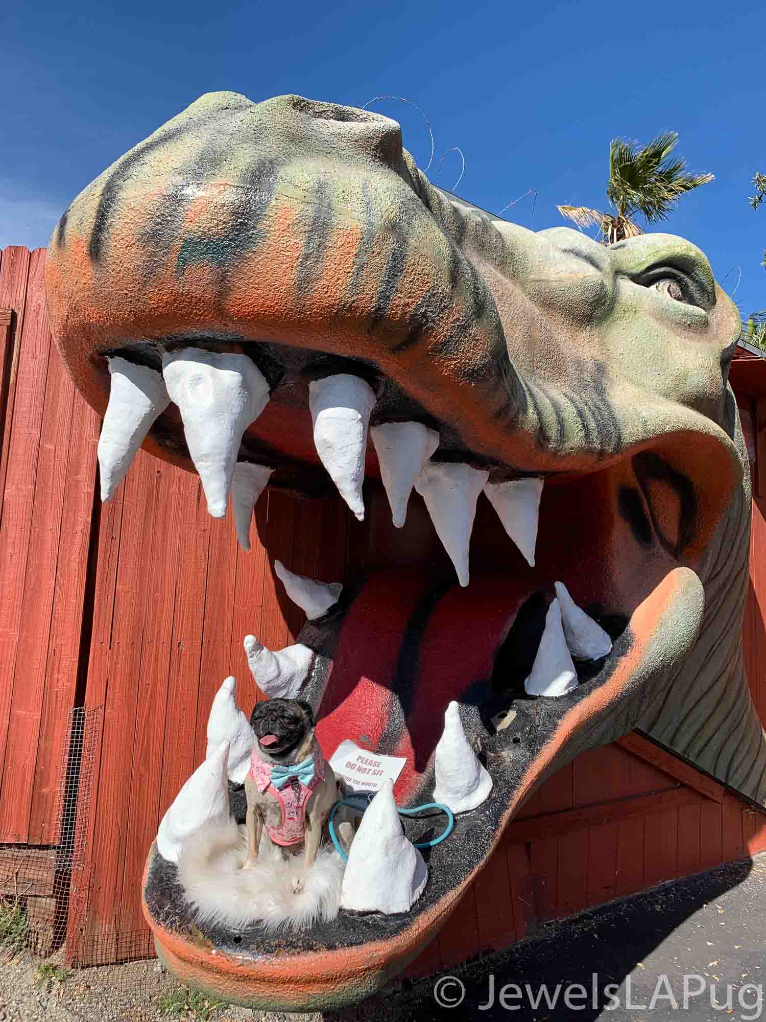 So, my friends, Monty, Ivy, George, Taz and I had a fun drive up the 10 from LA to Palm Springs. We were so excited to be spending the whole weekend together and the car was loaded with enough snacks for an army of pugs, not just our grumble. You would not believe how full the trunk was with all our weekend party kit. It already had the makings of an epic few days!!