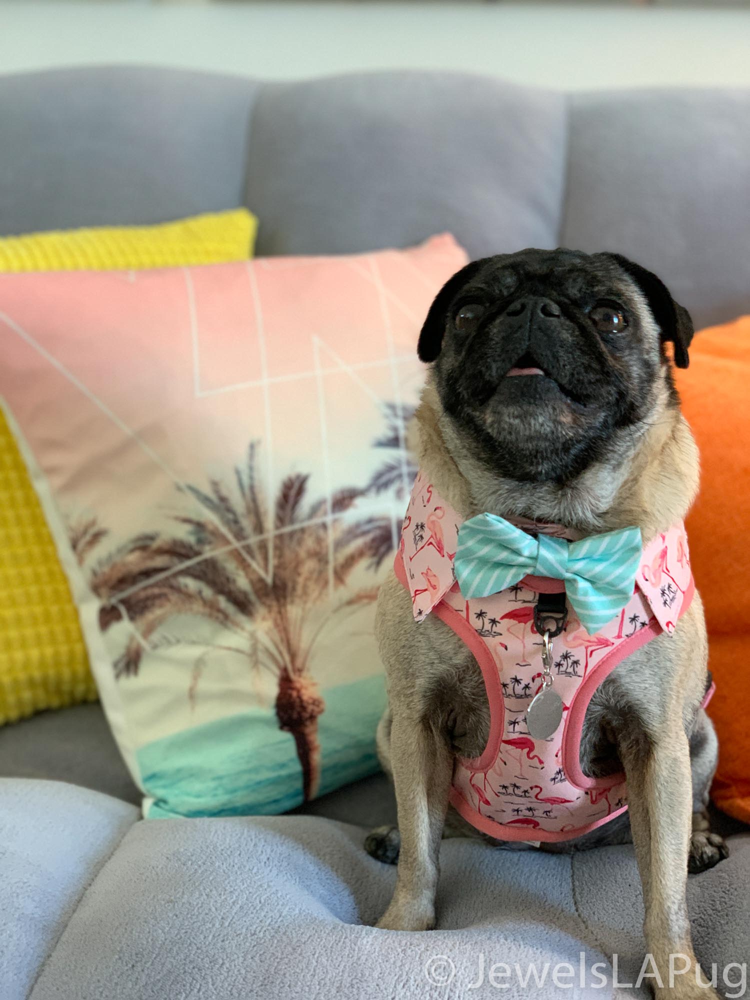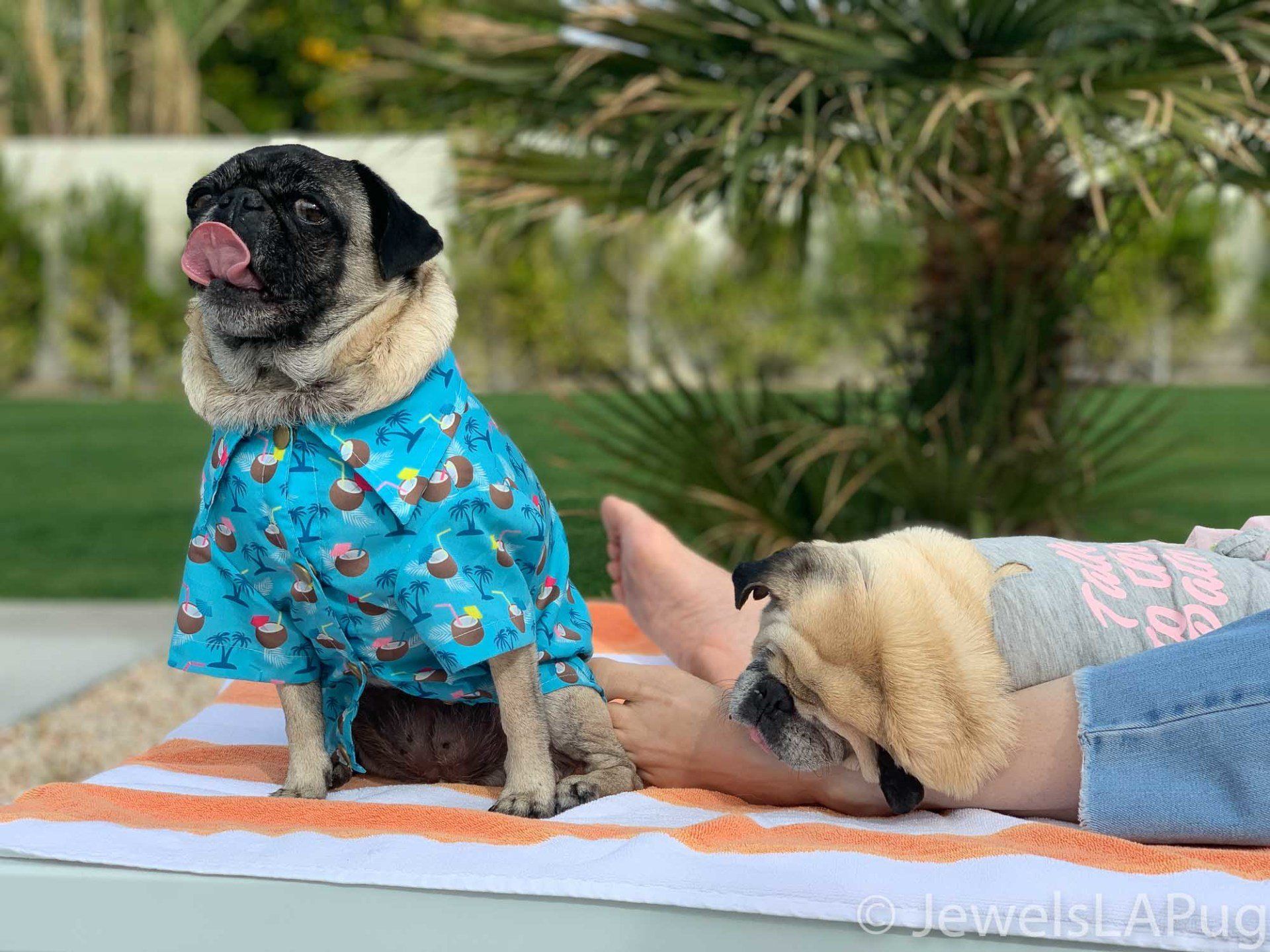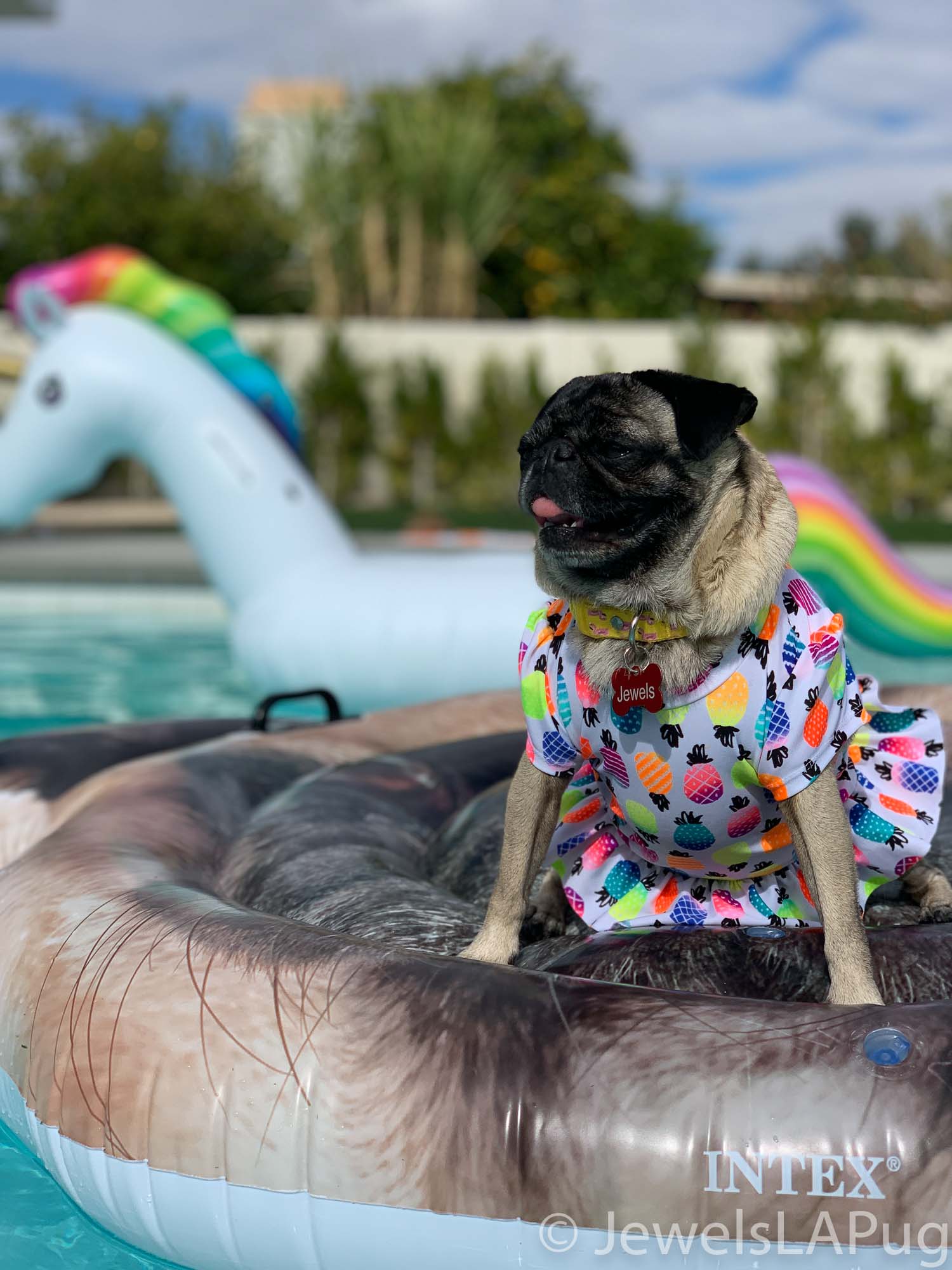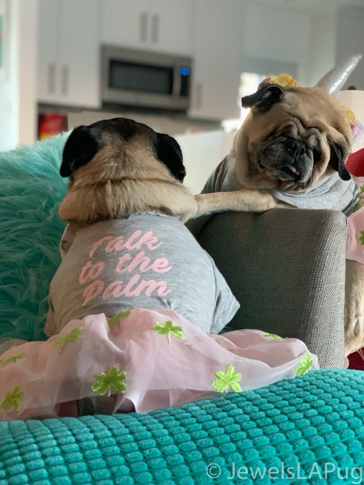So, my friends, Monty, Ivy, George, Taz and I had a fun drive up the 10 from LA to Palm Springs. We were so excited to be spending the whole weekend together and the car was loaded with enough snacks for an army of pugs, not just our grumble. You would not believe how full the trunk was with all our weekend party kit. It already had the makings of an epic few days!!